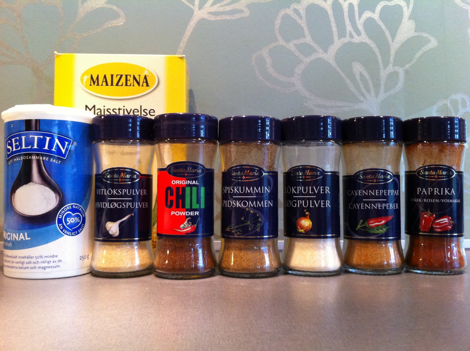 Gör din egen taco kryddblandning. Det blir samma smak och doft som köpt och så mycket nyttigare oxå!Ingen i min familj har någonsin märkt någon skillnad. En sats motsvarar ungefär 1,5 färdigköpt påse. Snäpp bara bort strölocket på kryddburken och gör en rejäl laddning, när du ändå är igång. Förvara blandningen i en burk med tättslutande lock.