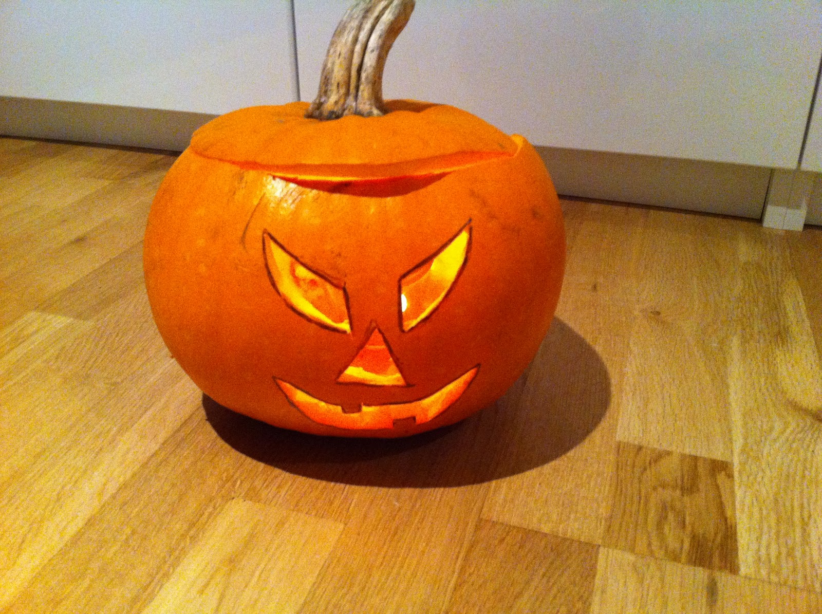 | Den här pumpan är på väg ut till trappen. Men först fick den bidra med fyllning till pajen. |