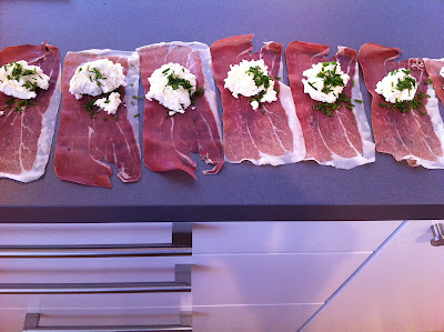 Här kommer nyårs varmrätt och valet föll på potatisrullar med en prima bit vacummörad rostas och gorgonzolasås. Jag lät delikatesspaprika och cocktailtomater gå med köttet in i ugnen samt kokade haricot verts till.