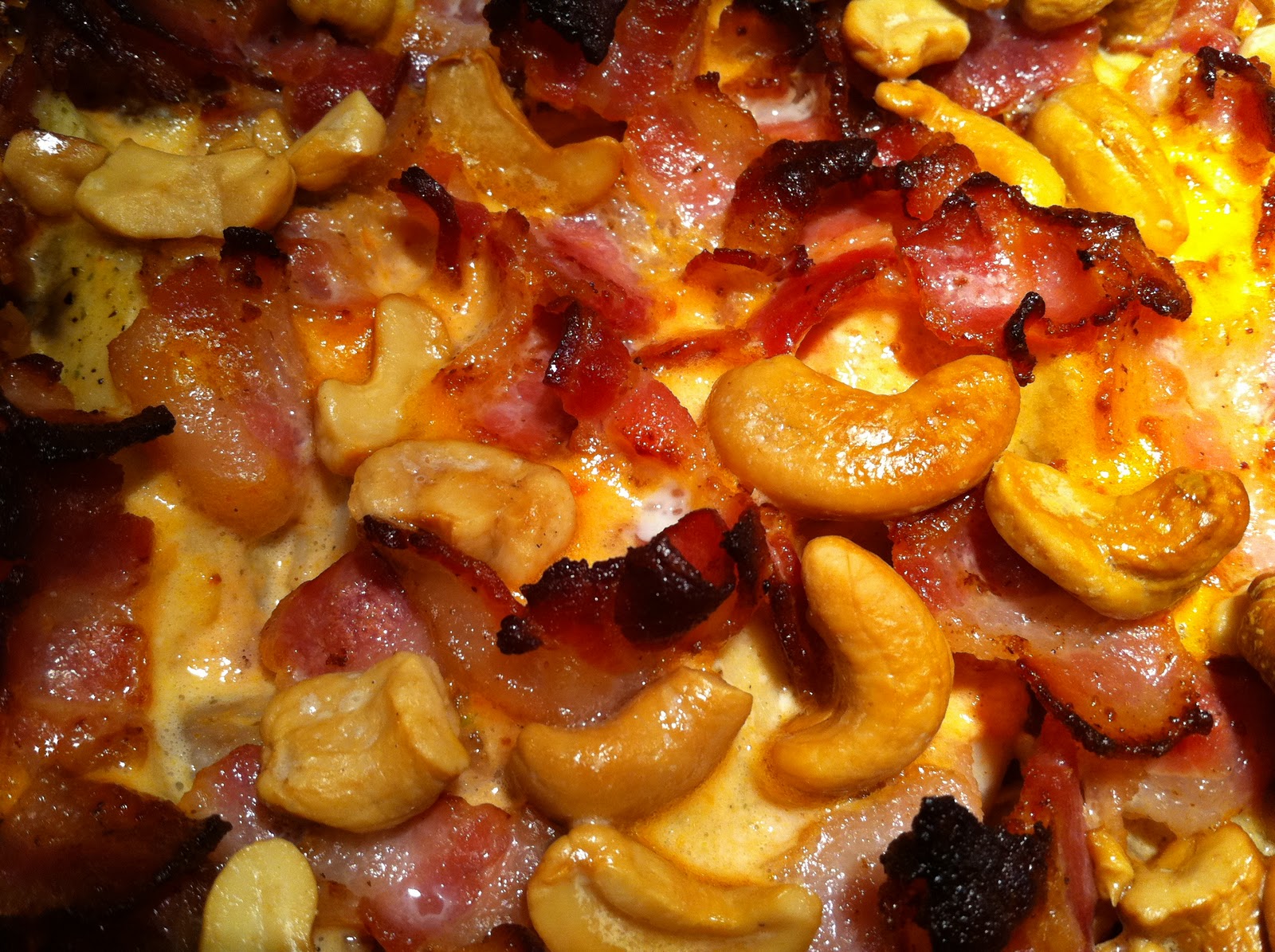 Strimla grönsakerna och fräs dem tillsammans med pressad vitlök. Tillsätt kycklingbitarna och övriga ingredienser. Låt sjuda på svag värme tills grytan tjocknar lite. Servera med valfritt tillbehör. Toppa med jordnötter, limeskivor och kokosflingor.