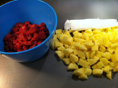 2. Stek först potatisen för sig. När den är klar, håll den varm.