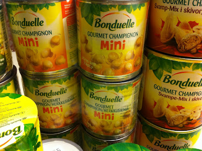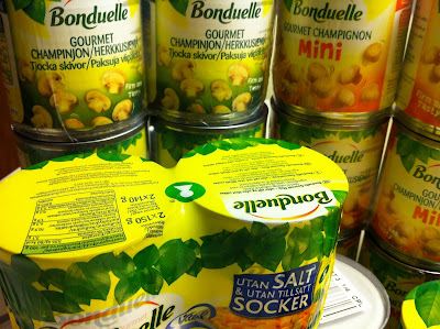 Framöver ska här lagas köttgrytor, champinjonsoppa, svamprisotto o s v. Bonduelle, som de flesta förknippar med majs, har så mycket mera, bl a majsblandning, ärtor, champinjoner och annan svampmix. Färska champinjoner i all ära, men visst är det smidigt med en burk i skafferiet också? Jag har också en förkärlek till just burkchampinjoner. Jag gillar konsistensen, svårt att beskriva!